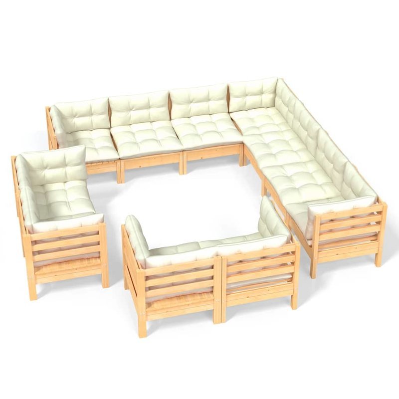 Diese Garten-Sitzgruppe ist eine ausgezeichnete Wahl, um sich zu entspannen und das Wetter zu genießen, ein Nickerchen zu machen oder mit Ihrer Familie oder Freunden zu plaudern. Das Terrassen-Lounge-Set ist aus massivem Kiefernholz gefertigt und dadurch robust und stabil. Die Kissen sorgen für zusätzlichen Komfort. Sie können es mit anderen modularen Segmenten kombinieren, um Ihr ganz persönliches Garten-Lounge-Set zusammenzustellen! Hinweis: Um die Lebensdauer Ihrer Gartenmöbel zu verlängern, empfehlen wir Ihnen, diese regelmäßig zu reinigen und im Freien vor Niederschlägen oder starken Sonnenstrahlen zu schützen.Reinigung: Verwenden Sie eine milde Seifenlösung.Lagerung: Wenn möglich, an einem kühlen, trockenen Ort im Innenbereich lagern. Wenn das Produkt im Freien gelagert wird, schützen Sie es mit einer wasserdichten Abdeckung. Wischen und trocknen Sie das überschüssige Wasser oder den Schnee nach Regen oder Schneefall von ebenen Flächen. Sorgen Sie für eine ausreichende Luftzirkulation, um feuchtigkeitsbedingte Schäden zu vermeiden.