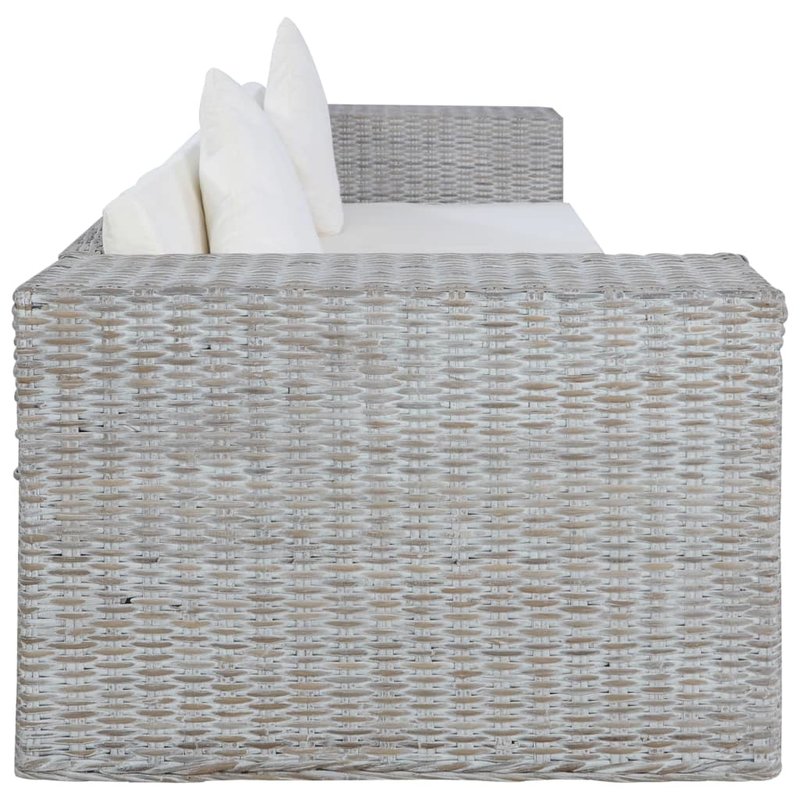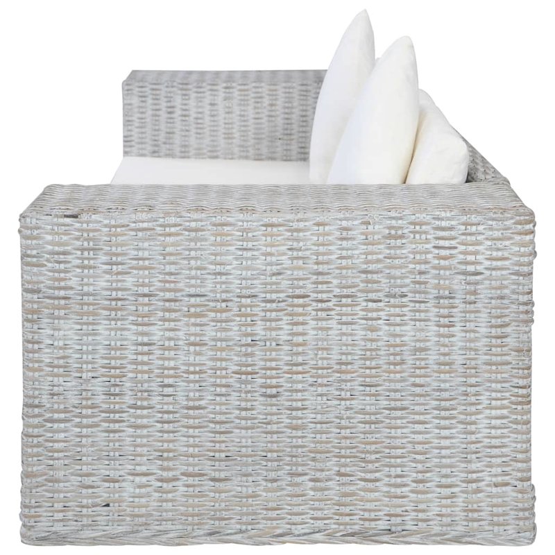 Dieses Rattan-Sofa vereint Stil und Funktionalität und ist eine tolle Ergänzung für Ihr Zuhause! Dank des echten Rattan-Materials ist das Set leicht zu reinigen, strapazierfähig und für den täglichen Gebrauch bestens geeignet. Es verfügt über einen robusten Holzrahmen, der haltbar und sehr stabil ist. Die dicken Sitz- und Rückenpolster sind sehr bequem und dank ihrer abnehmbaren Bezüge sogar waschbar. Darüber hinaus tragen die breiten Armlehnen zu Ihrem Sitzkomfort bei. Die Lieferung umfasst ein 2-Sitzer-Sofa, ein 3-Sitzer-Sofa, 5 Sitzpolster, 4 Rückenpolster und 4 Kissen.