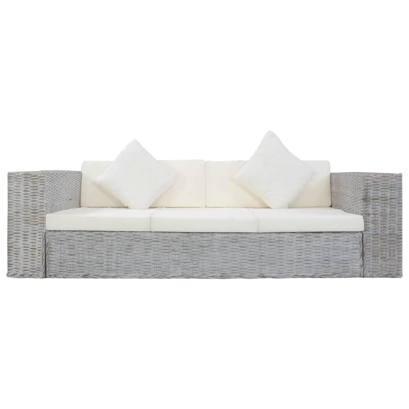 Dieses Rattan-Sofa vereint Stil und Funktionalität und wird eine tolle Ergänzung für Ihr Zuhause! Dank des echten Rattan-Kubu-Materials ist dieses Sofa leicht zu reinigen, strapazierfähig und für den täglichen Gebrauch bestens geeignet. Es verfügt über einen stabilen Holzrahmen, der haltbar und sehr stabil ist. Die dicken Sitz- und Rückenpolster und Kissen sind sehr bequem und dank ihrer abnehmbaren Bezüge sogar waschbar. Darüber hinaus ergänzen die breiten Armlehnen den Sitzkomfort. Zum Lieferumfang gehören ein 3-Sitzer-Sofa, 3 Sitzpolster, 2 Rückenpolster und 2 Kissen.