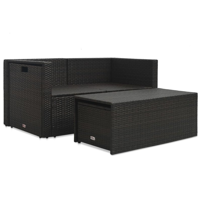 Dieses Poly-Rattan-Lounge-Set bietet eine stilvolle Sitzecke für Ihren Garten oder Ihre Terrasse. Die Sofagarnitur ist verfügt über ein besonderes Design: die Fußstützen können unter dem Tisch verstaut werden und die Ecksofas können unter dem 2-Sitzer-Sofa aufbewahrt werden. Folglich wird bei Nichtgebrauch viel Platz gespart. Zusätzlich können die Abschnitte dieses Garten-Lounge-Set als große Einheit gestapelt werden. Dank des wetterbeständigen PE-Rattans ist das Set pflegeleicht, strapazierfähig und für den täglichen Gebrauch im Freien geeignet. Die pulverbeschichteten Stahlrahmen verleihen dem Gartenmöbelset Stabilität und Robustheit. Da die Konstruktion auch leicht ist, lassen sich alle Artikel spielend umher bewegen, um zu jeder Einrichtung zu passen. Dieses Set wird außerdem samt äußerst bequemen, dick gepolsterten Sitz- und Rückenkissen geliefert, die für den höchsten Sitzkomfort sorgen. Die pflegeleichten Polyesterbezüge können außerdem abgenommen und gewaschen werden. Dieses Set ist einfach zu montieren. Hinweis: Wir empfehlen, das Set bei Regen, Schnee und Frost abzudecken, um eine lange Lebensdauer zu gewährleisten.