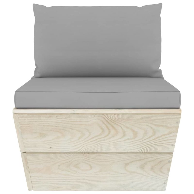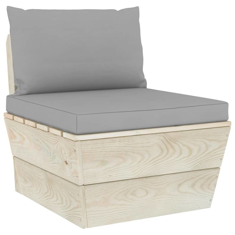 Diese 6-teilige Garten-Sofagarnitur aus Paletten mit Kissen ist eine ausgezeichnete Wahl, um sich zu entspannen und das Wetter zu genießen, ein Nickerchen zu machen oder mit Ihrer Familie oder Freunden zu plaudern. Mit seinem zeitlosen Palettendesign verleiht dieses Lounge-Set aus Holz Ihrer Terrasse, Ihrem Garten oder Ihrem Wohnzimmer einen Hauch von rustikalem Charme. Das Garten-Lounge-Set besteht aus imprägniertem Fichtenholz und ist somit langlebig und stabil. Diese Terrassen-Sofagarnitur verfügt über eine solide Konstruktion und ist wartungsarm. Mit seiner robusten Tischplatte bietet der Tisch den idealen Platz, um Snacks und Getränke griffbereit zu halten. Dank der Bezüge aus 100 % Polyester und der dicken Polsterung fühlen sich die Palettenauflagen weich an und bieten höchsten Komfort. Darüber hinaus ermöglicht Ihnen der modulare Aufbau, das Set in einer beliebigen Anordnung je nach Ihrem Geschmack aufzustellen. Bitte beachten Sie, dass Holz ein Naturprodukt ist und daher Unvollkommenheiten aufweisen kann.