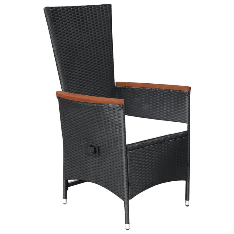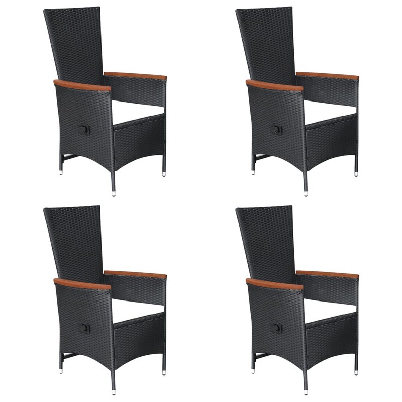 Schaffen Sie mit dieser Garten-Essgruppe eine überzeugende und zusammenhängende Ästhetik in Ihrem Außenbereich! Der Esstisch ist aus massivem Akazienholz gefertigt, was ihn robust und stabil macht. Durch die geölte Oberfläche ist der Holztisch auch für den Außenbereich geeignet. Mit einem Stahlrahmen, der mit witterungsbeständigem PE-Rattan geflochten ist, sind die Esszimmerstühle robust und leicht zu reinigen. Die Armlehnen sind wunderschön mit massivem Akazienholz verziert, was einen rustikalen Charme versprüht. Durch Ziehen des seitlichen Knopfes kann die Rückenlehne nach hinten und die Fußstütze gleichzeitig nach oben verstellt werden. Die dick gepolsterten Kissen sorgen zudem für zusätzlichen Sitzkomfort beim Faulenzen. Hinweis: Um die Lebensdauer Ihrer Gartenmöbel zu verlängern, empfehlen wir Ihnen, diese regelmäßig zu reinigen und bei Nichtgebrauch im Freien abzudecken.Reinigung: Verwenden Sie eine milde Seifenlösung.Lagerung: Wenn möglich, an einem kühlen, trockenen Ort im Innenbereich lagern. Wenn das Produkt im Freien gelagert wird, schützen Sie es mit einer wasserdichten Abdeckung. Wischen und trocknen Sie das überschüssige Wasser oder den Schnee nach Regen oder Schneefall von der ebenen Fläche. Sorgen Sie für eine ausreichende Luftzirkulation, um feuchtigkeitsbedingte Schäden zu vermeiden.