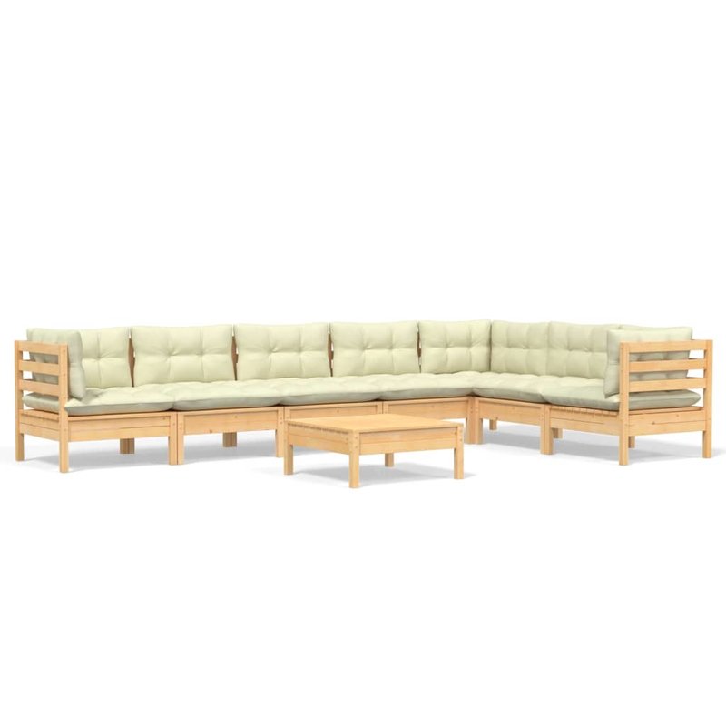 8-tlg. Garten-Lounge-Set mit Creme Kissen Massivholz Kiefer