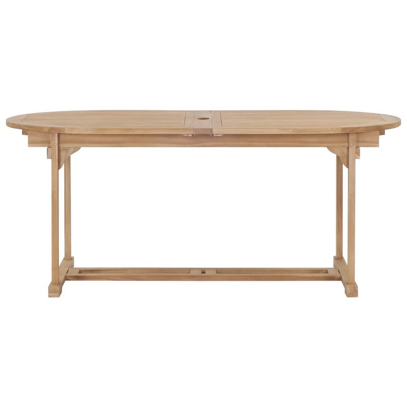 Diese Garten-Essgruppe aus massivem Teak ist perfekt für die Nutzung im Außenbereich geeignet und wird ein echter Hingucker in Ihrem Garten, auf Ihrer Terrasse oder Veranda sein. Dank der doppelten Verlängerungsstücke kann der rechteckige Tisch auf 230 cm oder bis zu 280 cm verlängert werden, wenn zusätzlicher Platz benötigt wird. Dieses aus extrem strapazierfähigem Teakholz gefertigte Möbelstück wurde gewürzt, im Ofen getrocknet und anschließend fein geschliffen, um ein sehr glattes Erscheinungsbild zu erzielen. Teakholz ist für seine außergewöhnliche Festigkeit und Witterungsbeständigkeit bekannt und eignet sich daher weitaus besser für Gartenmöbel als jede andere Holzart. Teakholz ist die perfekte Wahl, wenn Sie ein langlebiges Gartenmöbelstück kaufen möchten. Inzwischen kann es auch Feuchtigkeit und Insekten widerstehen. Aufgrund seiner robusten Struktur ist dieses Ess-Set sehr sicher und bietet Ihnen lang anhaltenden Komfort und große Bequemlichkeit, um eine angenehme Zeit mit Ihrer Familie und Freunden zu verbringen. Außerdem kann das Set bei Nichtgebrauch einfach weggeklappt werden. Dieser Tisch hat ein Loch, damit ein Regenschirm angebracht werden kann. Die Lieferung umfasst 1 ausziehbarer Tisch und 8 Klappstühle.