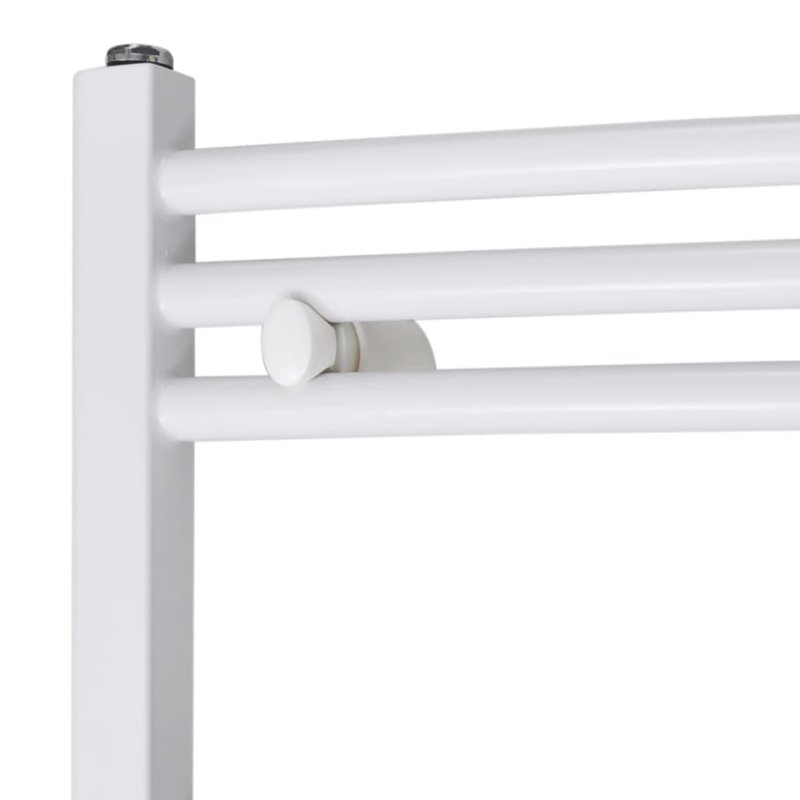 Dieser Mehrzweck-Badheizkörper dient sowohl als Handtuchwärmer als auch als Heizkörper. Er hält Ihr Badezimmer angenehm warm, beugt die Entstehung von Schimmel und Mehltau vor, und eignet sich zum Trocknen von großen Handtüchern und langen Bademänteln.Dieser Handtuchhalter-Heizkörper ist zum Anschließen an Zentralheizungsanlagen vorgesehen. Dank des Heißwasserkreislaufsystems werden Ihre Handtücher in kürzester Zeit getrocknet. Der Handtuchheizkörper verfügt über dickere Hochleistungsrohre, die eine höhere Wärmeleistung als die meisten herkömmlichen Handtuchwärmer gewährleisten.Einfache Monatge und Wartung. Im Lieferumfang sind Wandhalterungen und Schrauben enthalten.