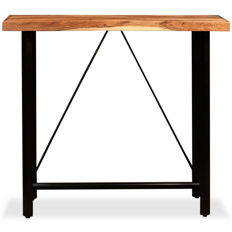 Dieses coole Bar-Set im angesagten Industrie-Look ist der Hingucker – ob zu Hause, im Restaurant oder an der Bar. Der Bartisch besteht aus massivem Akazienholz, das langlebig, stabil und einfach zu reinigen ist. Der Tisch ist komplett handgefertigt und die schöne Holzmaserung macht jedes Möbelstück zu einem Unikat. Die starken Stahlbeine sorgen nicht nur für Robustheit und Langlebigkeit, sondern tragen auch zum eindrucksvollen Industrie-Stil des Bartisches bei. Wichtiger Hinweis: Die Holzmaserung und Farben variieren von Stück zu Stück, dadurch wird jedes Möbelstück zum Unikat; die Lieferung erfolgt nach dem Zufallsprinzip. Die Sitzpolster aus feinstem Echtleder und Canvas verleihen den Barhockern Langlebigkeit und Komfort. Das stabile Stahl-Untergestell sorgt für den markanten Industrie-Look und einen festen Stand. Die Lieferung umfasst 1 Bartisch und 4 Barhocker. Die Montage gelingt mühelos.