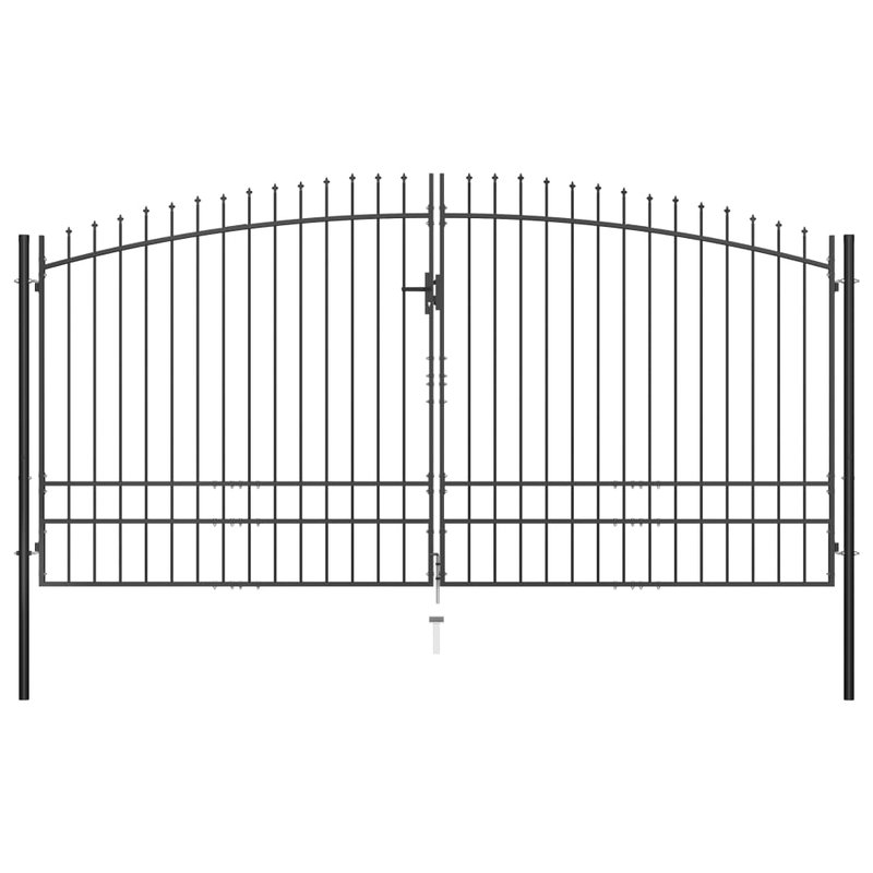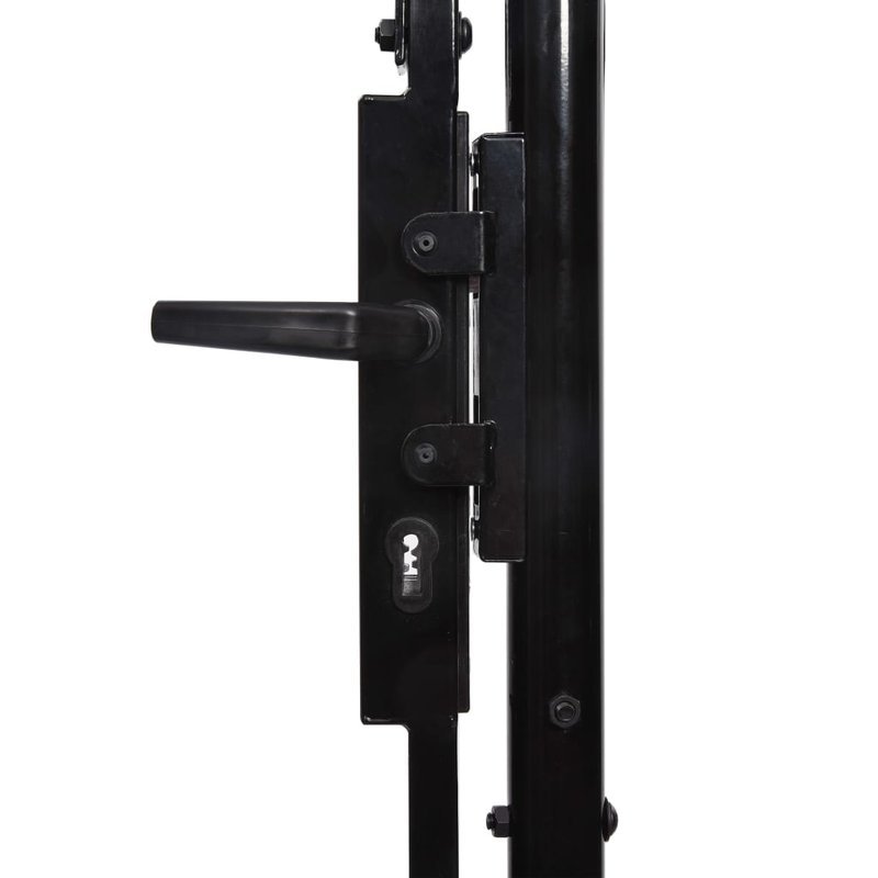 Dieses Gartentor wird eine moderne, praktische Barriere sein, die Ihren Garten von der Außenwelt trennt. Äußerst stabil und haltbar, wird das Zauntor eine praktische Barriere für Ihren Garten, Innenhof oder Ihre Terasse sein. Die vertikalen Stangen verfügen über Speerspitzen an den Enden und die horizontalen Streben dienen zur Rahmenstärkung. Somit wird Ihnen unser Gartentor einen hohen Maß an Privatspähre und Sicherheit bieten und zugleich einen fabelhaften Eingang zu Ihrem Grundstück darstellen. Das Tor ist aus hochbelastbarem, pulverbeschichtetem Stahl gefertigt und ist somit gegen Rost und Korrosion geschützt. Es kommt auch mit einem Bolzenscharnier für eine schnelle Verriegelung und Befestigungspfosten für die einfache Installation. Drei Tasten passende sind ebenfalls im Lieferumfang enthalten. Dieses Tor ist eine großartige Kombination aus Stil, Stärke, Stabilität und Korrosionsbeständigkeit!