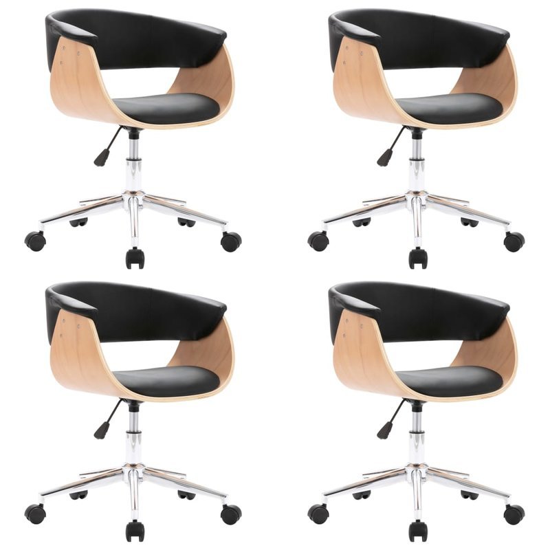 Dieses Set aus 4 drehbaren Esszimmerstühlen mit stilvollem und zeitgemäßem Design ist eine perfekte, praktische und moderne Ergänzung für jedes Wohnzimmer, Schlafzimmer, Lounge oder Büro. Es bietet einen bequemen Platz für Ihre Familie, um im Esszimmer Mahlzeiten zu genießen oder im Wohnzimmer zu speisen und sich auszuruhen. Sitz und Rückenlehne sind ergonomisch geformt, mit weichem Kunstleder bezogen und mit Schaumstoff dick gepolstert, was den Stuhl sehr bequem macht. Das Holzgestell und die Metallbeine tragen zu seiner Langlebigkeit bei und sind auch ästhetisch ansprechend. Der Stuhl ist um 360 Grad schwenkbar und verfügt über einen höhenverstellbaren Mechanismus mit Gasfedermechanismus. Diese Esszimmerstühle sind leicht zu montieren.