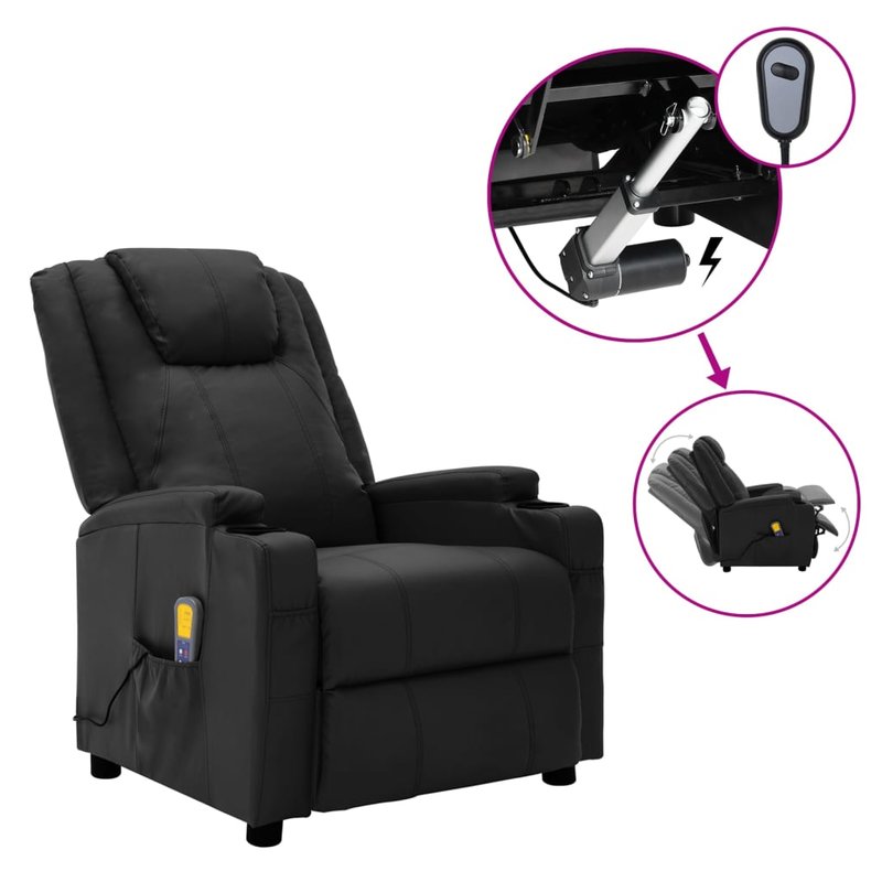 Dieser elektrisch verstellbare Massagesessel ist eine hervorragende Sitzlösung für Ihr Wohnzimmer. Der elektrische Massagesessel ist mit Kunstleder bezogen und von einem Eisenrahmen getragen; dadurch ist der verstellbare Sessel stabil und weich. Der elektrische Ruhesessel verfügt über 6 Massagepunkte für Rücken, Gesäß und Beine. Die Massagepunkte senden entspannende Vibrationen aus. Zusätzlich kann der Sitz für ein noch entspannteres Gefühl mit einem Knopfdruck beheizt werden. Dieser Sessel ist mit einem Elektromotor ausgestattet, der es Ihnen ermöglicht, die Rückenlehne und die Fußstütze über die Handsteuerung nach vorne oder hinten zu verstellen. Dieser elektrische Massagesessel ist auch mit einer Seitentasche und zwei Getränkehaltern ausgestattet. Erleben Sie eine schöne entspannende Zeit in diesem Massagesessel!