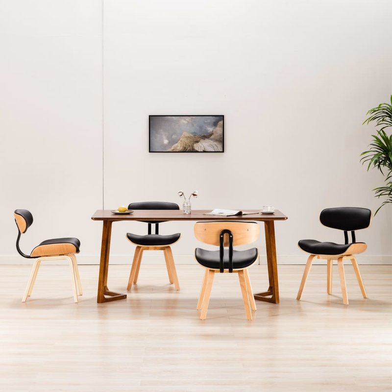 Mit diesem stilvollen Esszimmerstuhl-Set fügen Sie sofort einen echten Blickfang hinzu, um Ihr Esszimmer oder Ihre Küche zu verschönern! Mit seinem gepflegten und schlichten Design bietet es Ihnen mit Sicherheit höchsten Sitzkomfort! Die Stühle sind mit pflegeleichtem Kunstleder bezogen, um optimalen Komfort zu bieten. Der robuste Rahmen aus gebogenem Holz verleiht ihm eine einzigartige Schönheit und Eleganz. Die 4 Holzbeine sorgen für hohe Robustheit und Stabilität. Das ergonomische Design macht die Esszimmerstühle außerdem sehr bequem. Lieferung umfasst 4 Stühle mit Kunstlederbezug.