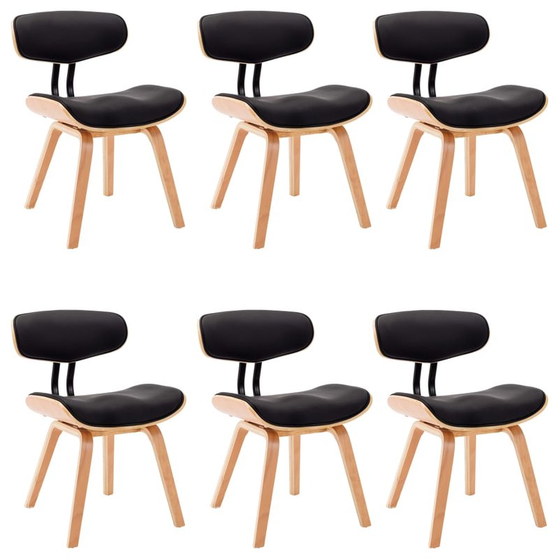 Mit diesem stilvollen Esszimmerstuhl-Set fügen Sie sofort einen echten Blickfang hinzu, um Ihr Esszimmer oder Ihre Küche zu verschönern! Mit seinem gepflegten und schlichten Design bietet es Ihnen mit Sicherheit höchsten Sitzkomfort! Die Stühle sind mit pflegeleichtem Kunstleder bezogen, um optimalen Komfort zu bieten. Der robuste Rahmen aus gebogenem Holz verleiht ihm eine einzigartige Schönheit und Eleganz. Die 4 Holzbeine sorgen für hohe Robustheit und Stabilität. Das ergonomische Design macht die Esszimmerstühle außerdem sehr bequem. Lieferung umfasst 6 Stühle mit Kunstlederbezug.