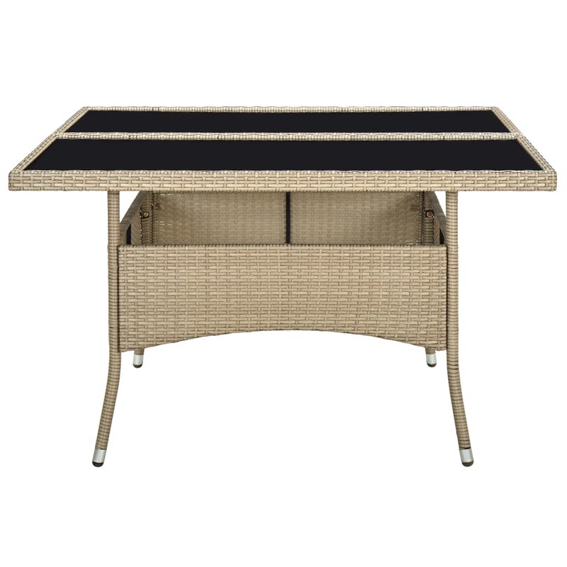 Werten Sie Ihren Garten oder Ihre Veranda mit diesem auffälligen Garten-Esstisch auf. Er erfüllt mühelos die Bedürfnisse Ihrer Gäste und bietet gleichzeitig den perfekten Platz für ein Abendessen im Freien! Sie können an diesem Esstisch unvergessliche Mahlzeiten unter freiem Himmel oder ein sonniges Mittagessen auf der Terrasse genießen. Der Rattantisch bietet Platz für bis zu 4 Personen. Ausgestattet mit einem pulverbeschichteten Stahlrahmen, der mit UV- und witterungsbeständigem PE-Rattan umwickelt ist, gewährleistet dieser Tisch einen jahrelangen Außeneinsatz. Hergestellt aus gehärtetem Glas, ist die Tischplatte pflegeleicht und einfach zu reinigen. Darüber hinaus ermöglicht die leichte Konstruktion aus Poly-Rattan die einfache Umstellung dieses Tisches. Wichtiger Hinweis: Wir empfehlen, den Tisch bei Regen, Schnee, Frost oder anderen rauen Wetterbedingungen abzudecken, um seine Lebensdauer zu verlängern.