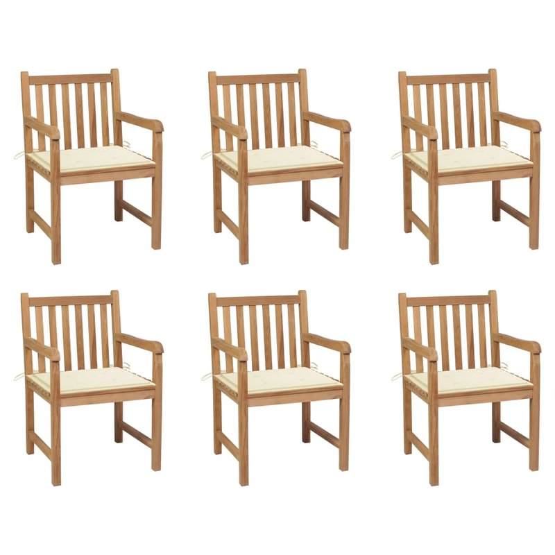 Mit ihrem rustikalen und zugleich praktischen Design bringen diese Gartenstühle aus Holz neuen Schwung in Ihren Außenbereich! Das für dieses Möbelstück verwendete Teakholz ist technisch getrocknet und anschließend fein geschliffen worden, um eine sehr glatte Textur aufzuweisen. Teakholz ist für seine außergewöhnliche Festigkeit und Witterungsbeständigkeit geschätzt und eignet sich daher besser für Gartenmöbel als jede andere Holzart. Massives Teakholz ist die perfekte Wahl, wenn Sie ein langlebiges Gartenmöbel haben möchten. Die erlesene Formgebung fügt sich im Nu harmonisch in Ihren Garten- oder Hof-Dekor ein. Das Set eignet sich auch ideal für entspannende Momente in einem romantischen Landhausgarten oder in der Nähe eines idyllischen Gartenteichs. Die mitgelieferte Auflage ist viel mehr als eine praktische Ergänzung, sie erfüllt auch eine dekorative Funktion. Hinweis: Um die Lebensdauer Ihrer Gartenmöbel zu verlängern, empfehlen wir Ihnen, diese regelmäßig zu reinigen und im Freien vor Niederschlägen oder starken Sonnenstrahlen zu schützen.Reinigung: Verwenden Sie eine milde SeifenlösungLagerung: Wenn möglich, an einem kühlen, trockenen Ort im Innenbereich lagern. Wenn das Produkt im Freien gelagert wird, schützen Sie es mit einer wasserdichten Abdeckung. Wischen und trocknen Sie das überschüssige Wasser oder den Schnee nach Regen oder Schneefall von ebenen Flächen. Sorgen Sie für eine ausreichende Luftzirkulation, um feuchtigkeitsbedingte Schäden zu vermeiden.