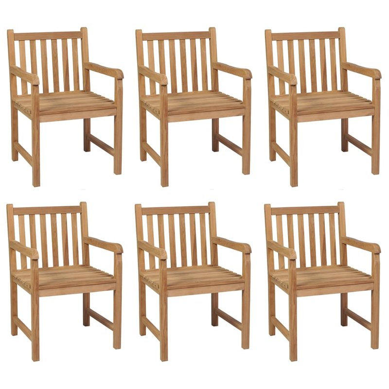 Mit ihrem rustikalen und zugleich praktischen Design bringen diese Gartenstühle aus Holz neuen Schwung in Ihren Außenbereich! Das für dieses Möbelstück verwendete Teakholz ist technisch getrocknet und anschließend fein geschliffen worden, um eine sehr glatte Textur aufzuweisen. Teakholz ist für seine außergewöhnliche Festigkeit und Witterungsbeständigkeit geschätzt und eignet sich daher besser für Gartenmöbel als jede andere Holzart. Massives Teakholz ist die perfekte Wahl, wenn Sie ein langlebiges Gartenmöbel haben möchten. Die erlesene Formgebung fügt sich im Nu harmonisch in Ihren Garten- oder Hof-Dekor ein. Das Set eignet sich auch ideal für entspannende Momente in einem romantischen Landhausgarten oder in der Nähe eines idyllischen Gartenteichs. Die mitgelieferte Auflage ist viel mehr als eine praktische Ergänzung, sie erfüllt auch eine dekorative Funktion. Hinweis: Um die Lebensdauer Ihrer Gartenmöbel zu verlängern, empfehlen wir Ihnen, diese regelmäßig zu reinigen und im Freien vor Niederschlägen oder starken Sonnenstrahlen zu schützen.Reinigung: Verwenden Sie eine milde SeifenlösungLagerung: Wenn möglich, an einem kühlen, trockenen Ort im Innenbereich lagern. Wenn das Produkt im Freien gelagert wird, schützen Sie es mit einer wasserdichten Abdeckung. Wischen und trocknen Sie das überschüssige Wasser oder den Schnee nach Regen oder Schneefall von ebenen Flächen. Sorgen Sie für eine ausreichende Luftzirkulation, um feuchtigkeitsbedingte Schäden zu vermeiden.