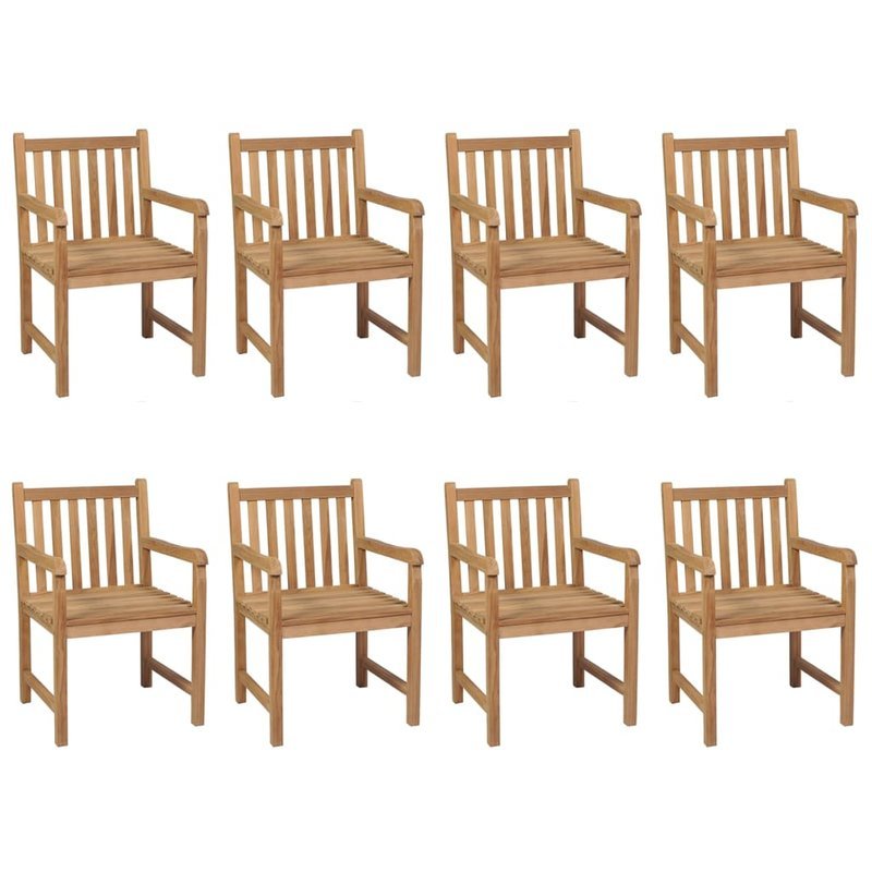 Mit ihrem rustikalen und zugleich praktischen Design bringen diese Gartenstühle aus Holz neuen Schwung in Ihren Außenbereich! Das für dieses Möbelstück verwendete Teakholz ist technisch getrocknet und anschließend fein geschliffen worden, um eine sehr glatte Textur aufzuweisen. Teakholz ist für seine außergewöhnliche Festigkeit und Witterungsbeständigkeit geschätzt und eignet sich daher besser für Gartenmöbel als jede andere Holzart. Massives Teakholz ist die perfekte Wahl, wenn Sie ein langlebiges Gartenmöbel haben möchten. Die erlesene Formgebung fügt sich im Nu harmonisch in Ihren Garten- oder Hof-Dekor ein. Das Set eignet sich auch ideal für entspannende Momente in einem romantischen Landhausgarten oder in der Nähe eines idyllischen Gartenteichs. Die mitgelieferte Auflage ist viel mehr als eine praktische Ergänzung, sie erfüllt auch eine dekorative Funktion. Hinweis: Um die Lebensdauer Ihrer Gartenmöbel zu verlängern, empfehlen wir Ihnen, diese regelmäßig zu reinigen und im Freien vor Niederschlägen oder starken Sonnenstrahlen zu schützen.Reinigung: Verwenden Sie eine milde SeifenlösungLagerung: Wenn möglich, an einem kühlen, trockenen Ort im Innenbereich lagern. Wenn das Produkt im Freien gelagert wird, schützen Sie es mit einer wasserdichten Abdeckung. Wischen und trocknen Sie das überschüssige Wasser oder den Schnee nach Regen oder Schneefall von ebenen Flächen. Sorgen Sie für eine ausreichende Luftzirkulation, um feuchtigkeitsbedingte Schäden zu vermeiden.