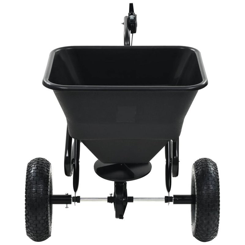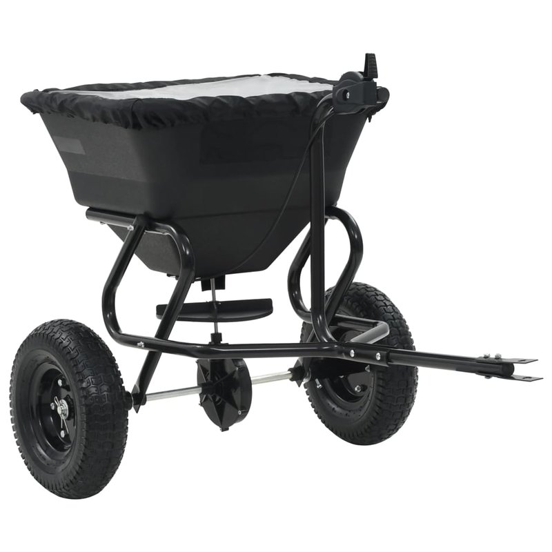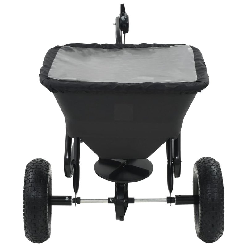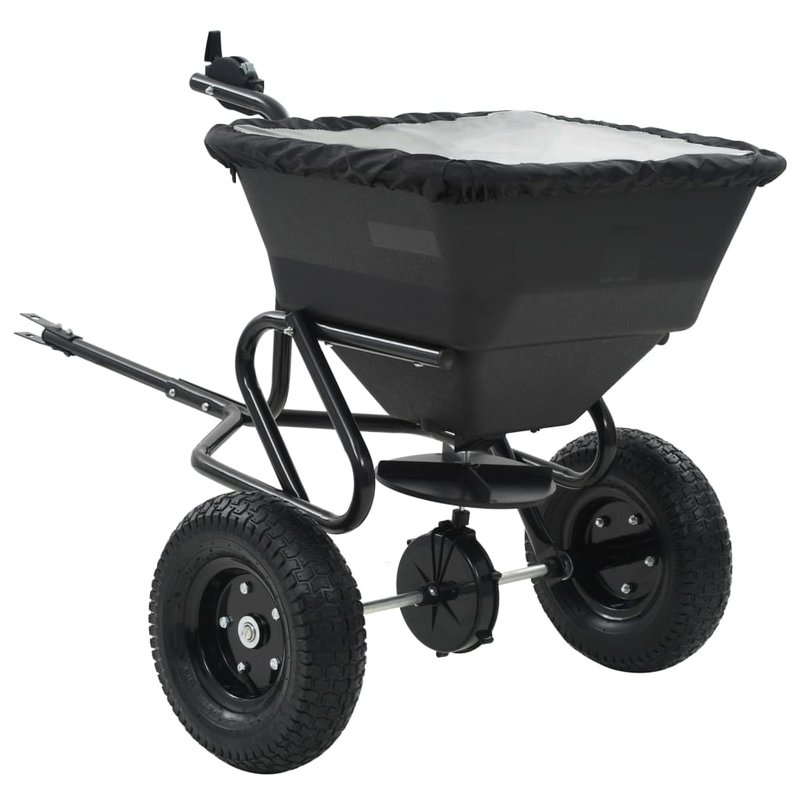 Dieser Streusalzverteiler zum Ziehen hilft Ihnen nicht nur dabei, Ihre Einfahrten und Wege im Winter zu streuen, sondern kann auch bei der Aussaat und Düngung im Frühjahr und Herbst eingesetzt werden. Der robuste Streuer hat einen Stahlrohrrahmen, der korrosionsbeständig und langlebig ist. Es hat auch einen großen PVC-Behälter, in dem das Salz, die Samen oder der Dünger transportiert werden können. Dieser Gartenstreuer ist so konzipiert, dass er ein ausgewogenes Verhältnis zwischen der Verteilung von zu viel oder zu wenig Grassamen, weder zu dicht noch zu spärlich, schafft, um das Gras gesund wachsen zu lassen. Es hilft auch, den Rasendünger gleichmäßig auszustreuen, um das Risiko von Düngerbrand zu verringern. Der Rasenverteiler wird mit einer kabelgebundenen Steuerung neben dem Griff geliefert, mit der Sie die Streudrehzahl für mehr Effizienz einfach einstellen können. Das Design mit zwei großen und breiten Rädern und einem langen Griff hilft Ihnen auch, dieses Gerät in Ihrem Garten leicht zu bewegen. Dieser Artikel ist einfach zu montieren. Eine Abdeckung für den Trichter ist ebenfalls im Lieferumfang enthalten.