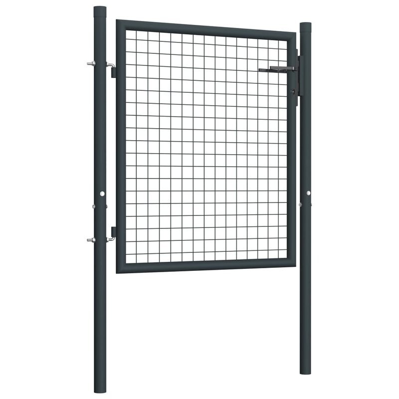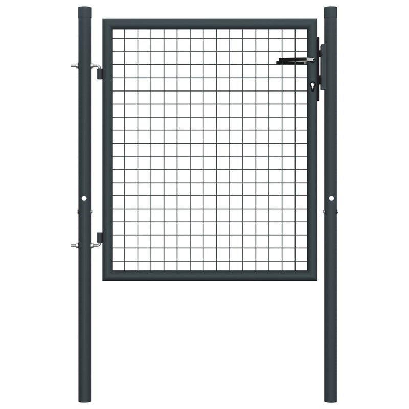 Dank seiner hohen Stabilität und Langlebigkeit kann dieses Gartentor als praktischer, moderner Eingang zu Ihrem Garten, Hof oder Terrasse eingesetzt werden. Das Gartentor ist perfekt verarbeitet und besteht aus verzinktem Stahl mit einer pulverbeschichteten Oberfläche, die rostfrei ist und eine robuste Konstruktion bildet. Es hat zwei seitliche Pfosten mit Bolzenscharnieren für eine einfache Installation. Die Lieferung umfasst auch drei Schlüssel.