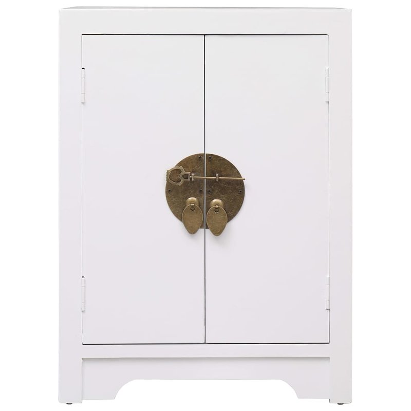 Verleihen Sie Ihrer Wohneinrichtung einen Hauch von Vintage-Charme mit diesem eleganten Nachttisch! Er kann auch als Telefontisch neben Ihrem Sofa dienen! Hergestellt aus Paulownia-Holz und MDF, ist dieser Nachttisch langlebig und robust. Die exquisiten goldenen Riegel im chinesischen Stil unterstreichen die zeitlose Eleganz. Der Nachttisch bietet großen Stauraum mit 2 Türen. Die stabile Tischplatte ist ideal für die Präsentation von Dekorationsobjekten, Fotorahmen oder Topfpflanzen. Er ist leicht mit einem feuchten Tuch zu reinigen. Der Beistellschrank ist einfach zu montieren.