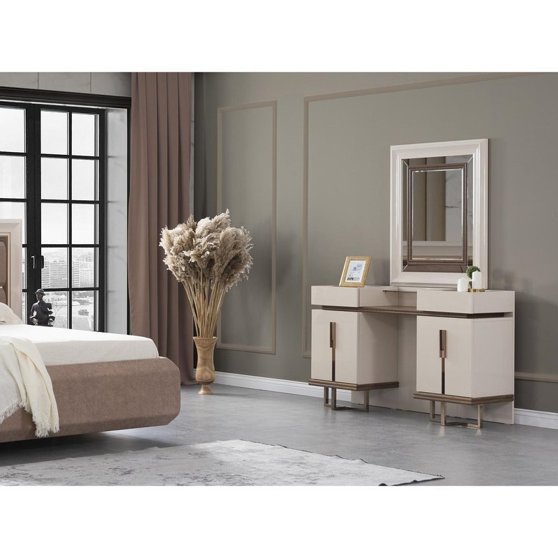 Schlafzimmer Set LUCCA 160 x 200 ohne Kleiderschrank mit Schminktisch 1X Nachttisch mit Spiegel