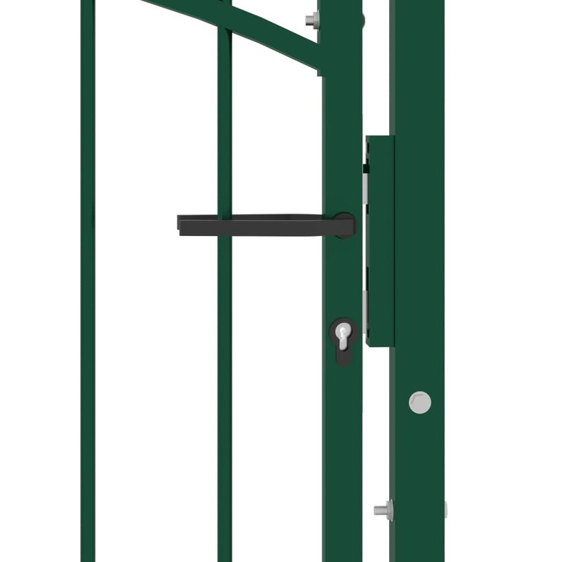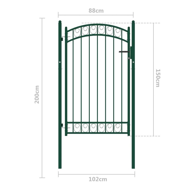 Dieses Zauntor bildet eine praktische Sicherheitsbarriere für Ihren Garten, Ihren Innenhof oder Ihre Terrasse. Dank der eleganten Bogenform und der starken horizontalen Verstrebungen zur Verstärkung des Rahmens bietet dieses Gartentor ein hohes Maß an Sicherheit und bildet gleichzeitig einen fabelhaften Zugang zu Ihrem Grundstück. Das aus robustem Stahl gefertigte Zauntor hat eine robuste Konstruktion und wurde gegen Rost und Korrosion pulverbeschichtet. Es wird mit zwei stabilen Pfosten und stabilen Scharnieren für eine einfache Installation geliefert, und ein Schließsystem mit drei passenden Schlüsseln ist ebenfalls im Lieferumfang enthalten.