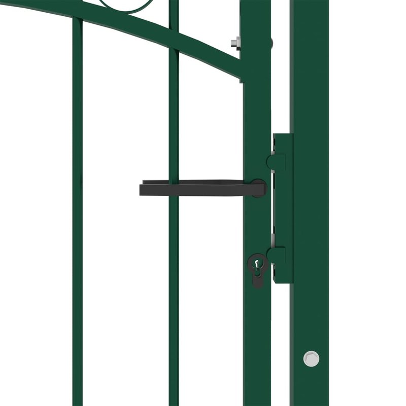 Dieses Zauntor bildet eine praktische Sicherheitsbarriere für Ihren Garten, Ihren Innenhof oder Ihre Terrasse. Dank der eleganten Bogenform und der starken horizontalen Verstrebungen zur Verstärkung des Rahmens bietet dieses Gartentor ein hohes Maß an Sicherheit und bildet gleichzeitig einen fabelhaften Zugang zu Ihrem Grundstück. Das aus robustem Stahl gefertigte Zauntor hat eine robuste Konstruktion und wurde gegen Rost und Korrosion pulverbeschichtet. Es wird mit zwei stabilen Pfosten und stabilen Scharnieren für eine einfache Installation geliefert, und ein Schließsystem mit drei passenden Schlüsseln ist ebenfalls im Lieferumfang enthalten.