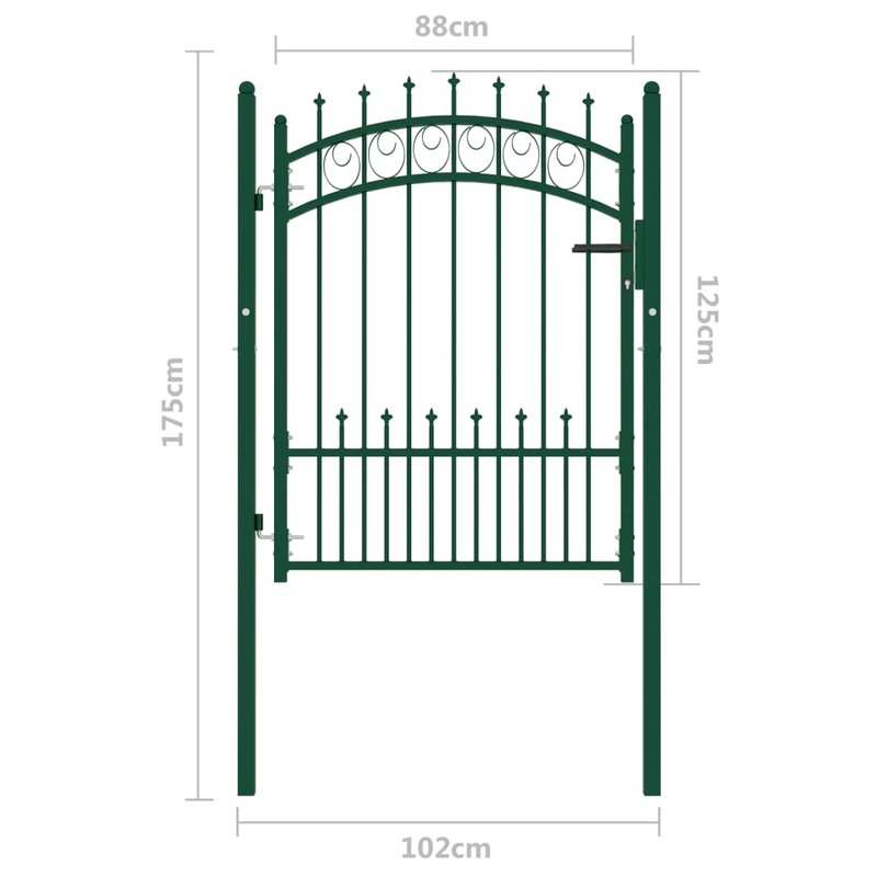 Dieses Zauntor bildet eine praktische Sicherheitsbarriere für Ihren Garten, Ihren Innenhof oder Ihre Terrasse. Das aus robustem Stahl gefertigte Zauntor hat eine robuste Konstruktion und wurde gegen Rost und Korrosion pulverbeschichtet. Mit den vertikalen Stäben mit Spitzen und der starken horizontalen Strebe als Verstärkung bietet dieses Gartentor ein hohes Maß an Sicherheit. Das gewölbte Oberteil trägt zu seiner Eleganz bei. Es wird mit zwei stabilen Pfosten und robusten Scharnieren für eine einfache Montage geliefert, und ein Schließsystem mit drei passenden Schlüsseln ist ebenfalls im Lieferumfang enthalten.